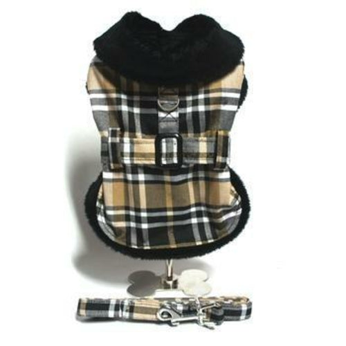 Brown Plaid Classic Pet Coat Harness with Matching Leash