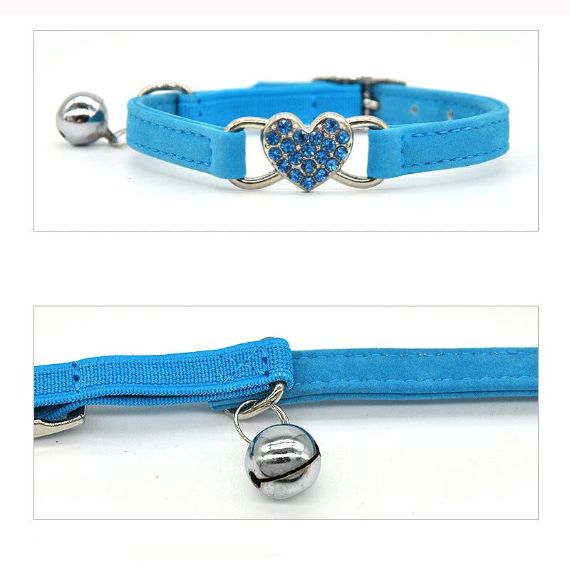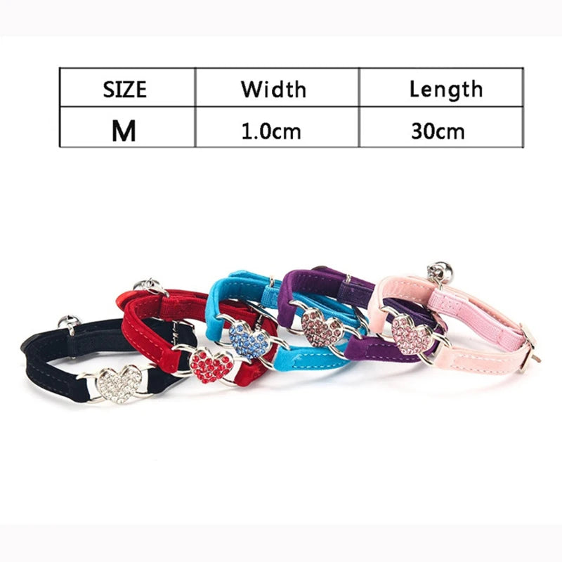 Featuring rhinestone heart-shaped collars and velvet bell collars, this pet accessory is perfect for any small pet. Durable and adjustable, pamper your dog or cat with this stylish collar.