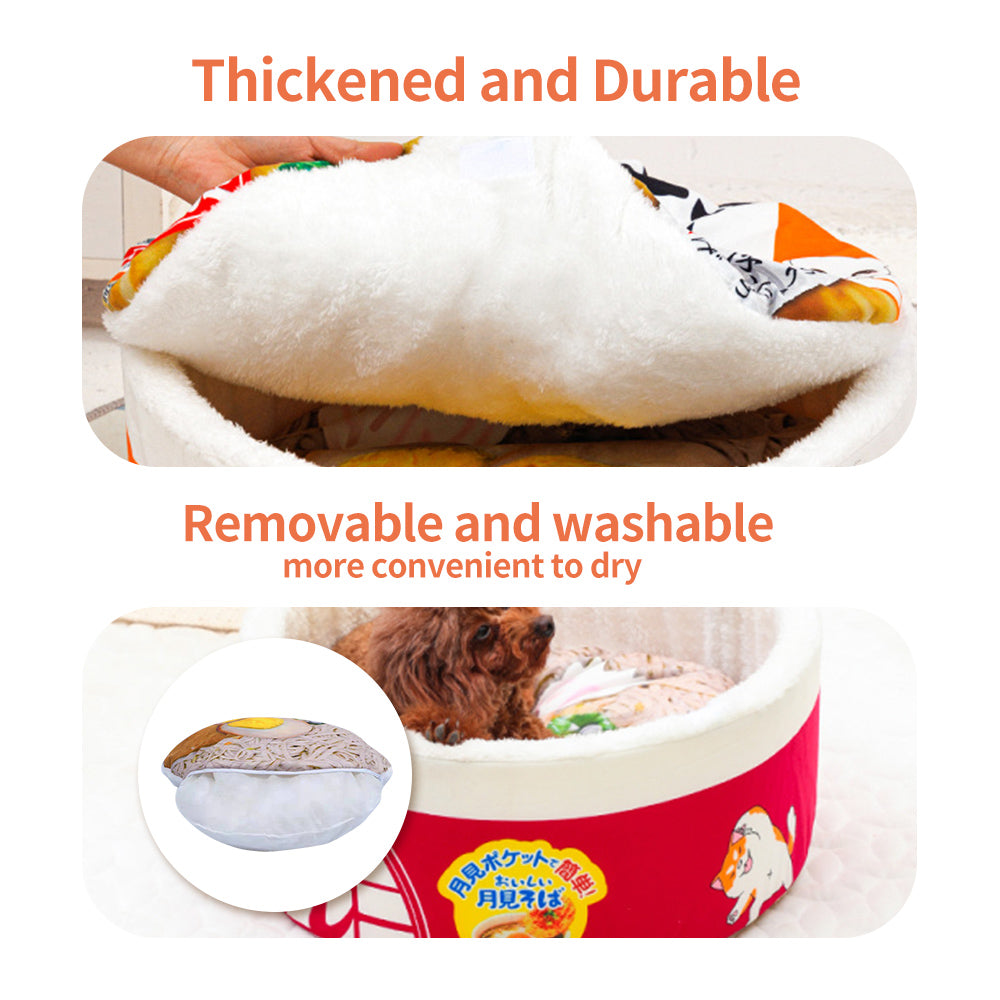 Treat your pet to the best with this cute Pet Ramen Cushion Bed. Crafted from ultra-plush materials, this bed provides your pet with the comfort and support they need for the perfect sleep. Perfect for cats and dogs, the cushion bed's filling keeps its shape and supports your pet's body. Inner bed cushion is removable and is machine washable.