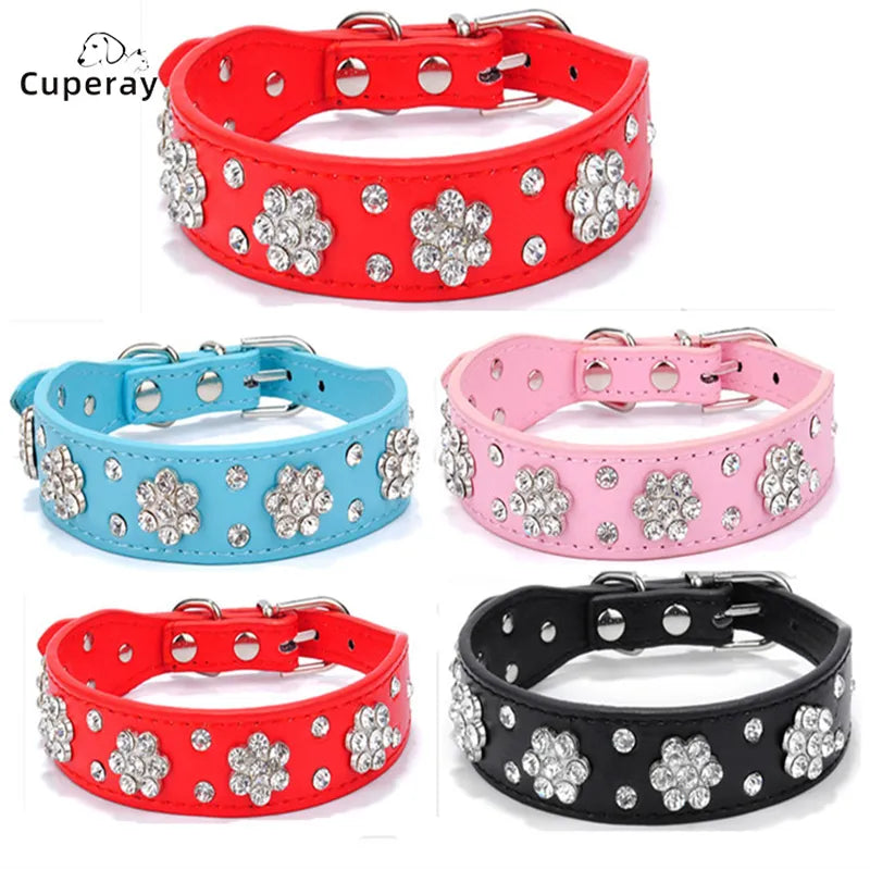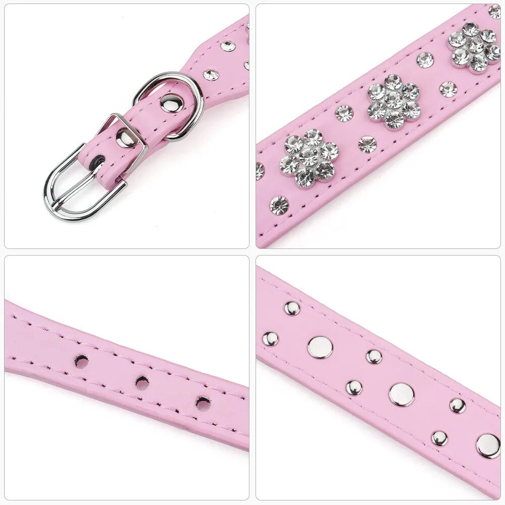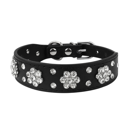 Fashion meets durability with this Shiny Rhinestone Pet Collar, crafted with strong, adjustable leather to ensure a comfortable yet secure fit. The standout feature is the beautiful rhinestone flower that adds a unique touch.